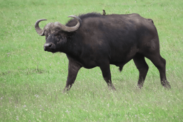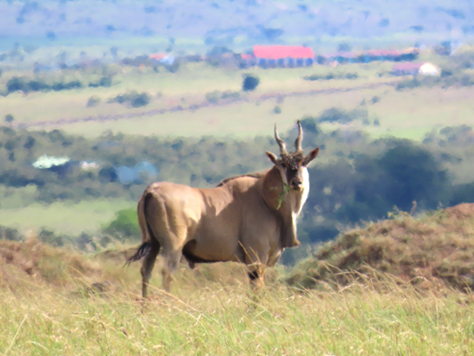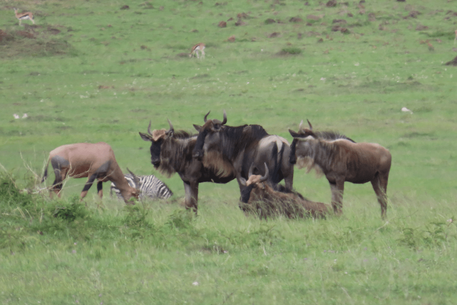 We descended onto the plain that the border runs across and came across other larger grazers of all kinds.  There were African buffalo, impala, eland (the largest antelope) and one of my favourites, wildebeest (they always look so morose), as well as many more zebra, topi and Thompson’s gazelle.  The collective noun for wildebeest is a confusion, by the way, which has to be based on the madness of their migration every year.