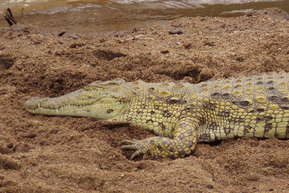 Another animal we saw at lunch (thank you Simon for pointing it out in the distance) was a large crocodile half in the water half out, sunning itself.  Too far away for a photo but here’s another one we saw: