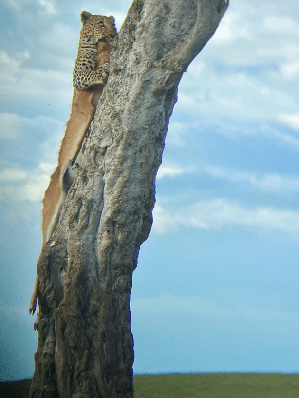 The tree provides security from hyenas which, once the leopard starts to eat the kill, will smell it and wait at the bottom of the tree in the hope that some part of the animal will fall to the ground.   They can’t climb trees so the leopard and its kill are safe.  Without the tree, the leopard would be soon in danger of losing the whole kill to the hyenas.  Nasty animals, but that’s nature’s way.