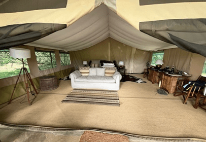 After we landed in Nairobi, we stayed overnight at an airport hotel and the next morning flew in a small plane from a regional airport to Musiara Airstrip in the Masai Mara that served the two Governor’s camps on that side of the Mara River.  We were staying at the one called Il Moran.  Governor’s Main Camp was the other.  We were met by Simon who’d be our guide for the duration of our stay.