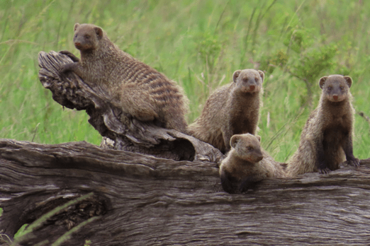 Our last animal of the tour was a family of banded mongooses (please note the correct plural).  We got a good look at them on our first day on the drive from the airstrip and they were in the same place, using a fallen tree as a base and lookout point.  Collectively, there are several nouns including my favourite, a committee.