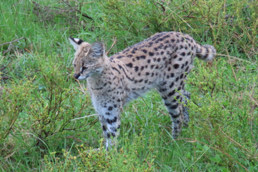 The first one was a very pretty serval cat, almost the first animal we saw on that morning’s drive.  It was delicately built, with lithe movements and very alert. We watched it try to catch something by leaping into the air and dropping down on it, but in that instance it was the prey’s lucky day, not the cat’s.  I don’t think there’s a specific word for a group of serval cats, but one of the many words for cats in general is a pounce, which I think is quite applicable here given what we saw it do.