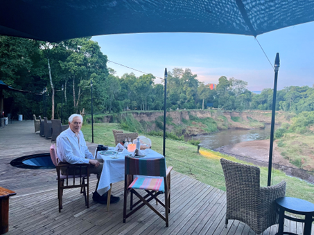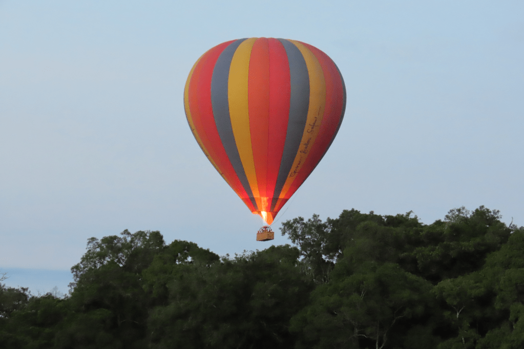 We had dinner back at the camp every night, but either breakfast or lunch could be taken on the game drive.  If we had breakfast at the camp, it might be before the drive started at 6.30am or 7am.  On one day, early, we saw three hot air balloons lift off from Little Governors Camp on the opposite side of the river and a little upriver.