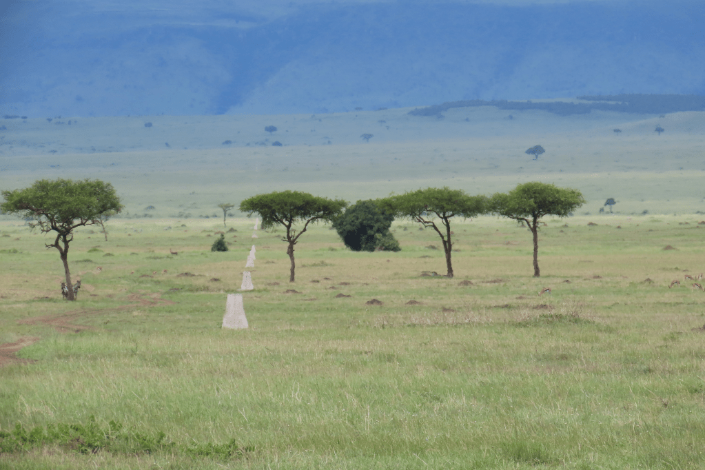 Further into the day, he took us a few hundred metres across the border with Tanzania where the Masai Mara meets the Serengeti.  The border is dead straight there and is marked by a line of trig point type concrete  structures placed about 250 metres apart on the grassland going in both direction as far as the eye can see.
