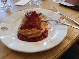 In addition to arriving by train and visiting Mike, we had a another train journey to Salzburg on Friday in the pouring rain and snow on the way back, where we had lunch in a delightful authentic restaurant that served Salzburger Nockeln, a soufflé served with raspberry jam (yum yum).