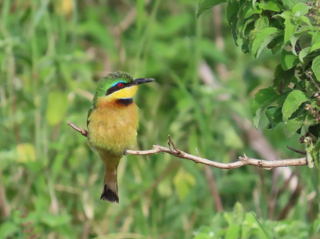 Europe has one species, a larger version which I think is even prettier but which I’ve only seen once, in Brittany.  My East Africa bird book boasts 20 bee-eater species including the Little and the European.  We only saw this one  – or rather Simon spotted it or else we would have completely missed it.  It’s widespread and plentiful – I saw it in Kruger too.
