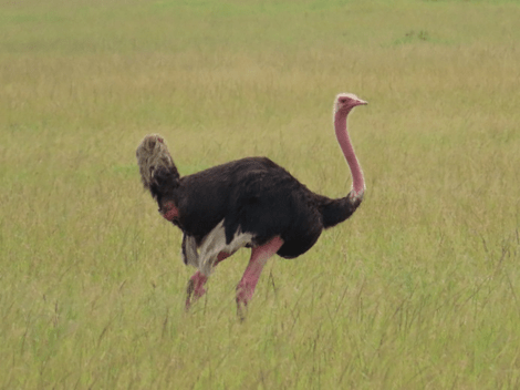 We saw quite a few Ostriches, as opposed to none in either of the Kruger visits, probably because Kruger was all scrubland; they prefer the open grassland habitat of the Masai Mara and Serengeti, which allows them some protection in using their top running speed of 70 km/h, as flight clearly is not an option.  And at 2.2m in height, they are the largest bird, the fastest two legged animal on land and they lay the largest eggs of any living land animal.