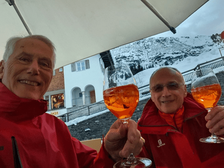 So Saturday was wonderful with the fresh snow, but the slopes were crowded with locals and the afternoon was still too warm for good skiing.  On every one of the five ski days, we started early and finished at around 1pm.  However, on the Sunday our flight back wasn’t till 4.25pm and we could and did book a taxi all the way to the airport.  That gave us nearly 4 hours skiing on Sunday morning and it was fantastic – perfect snow conditions, well-groomed pistes, blue skies and sunshine, around 0C, and not a lot of people on the slopes. It was the best skiing in all the days with Gus or Sabine this year.  The people arriving as we left, mainly Germans, would have much better snow.  You just can’t win.
