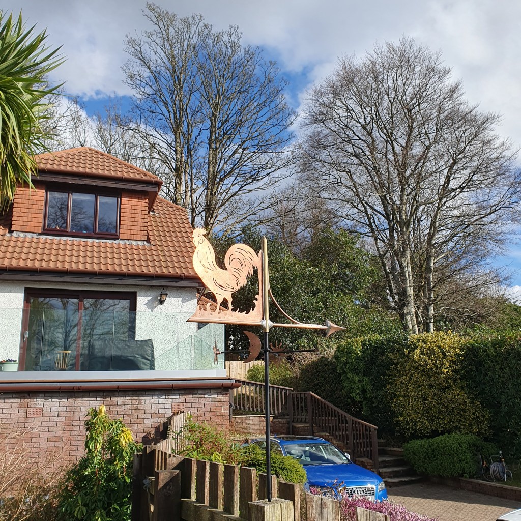 So pre-empting the question “When are you going to put the weathervane up” (although it would have been worth hearing the pronunciation struggle again, as explained below in the original story), I thought I’d better get on with it.  I was breaking my own rule of not doing anything skilled after lunch but it was a beautiful afternoon here, the poached eggs on top of haggis, hash browns and a bun I’d just enjoyed at a local Helensburgh eatery needed some working off and I’m still repeating to myself Gus’s mantra “Don’t let the old man in”.